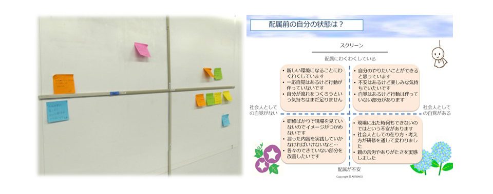 この手法のみでは、目につく大きな変化は見られません。しかし、水面下ではチーム学習をするマインドが醸成されたり、自身の認知の拡がりを緩やかに感じることができるので、その後のセッションに大きな影響を与えていきます。