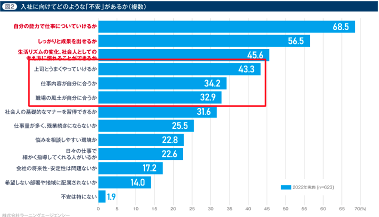 実際に入社したときにイメージと違ったというショックが大きく、組織に定着するまでに時間がかかってしまうことになります。