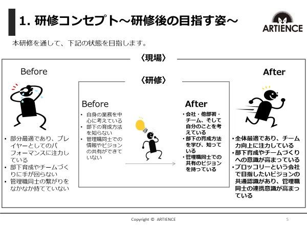 このように真の課題を見つけ、コンセプトを明確にすることで適切な管理職研修のカリキュラムを作成することができます。
