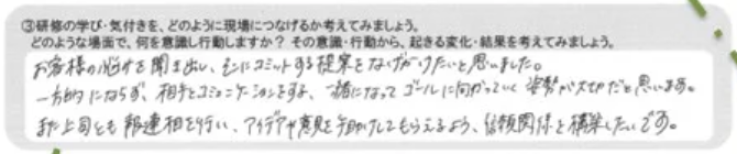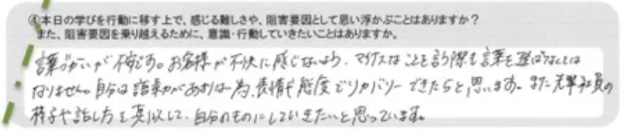 現場で意識すべきことを具体的に言語化することで、次の行動につなげやすくなります。