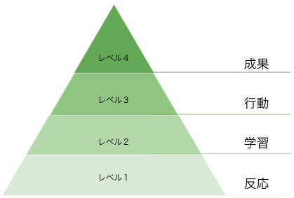 研修実施の1週間以内程度に行えるものとしては、レベル1の反応、レベル2の学習あたりまでです。