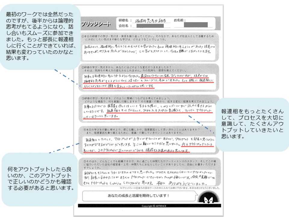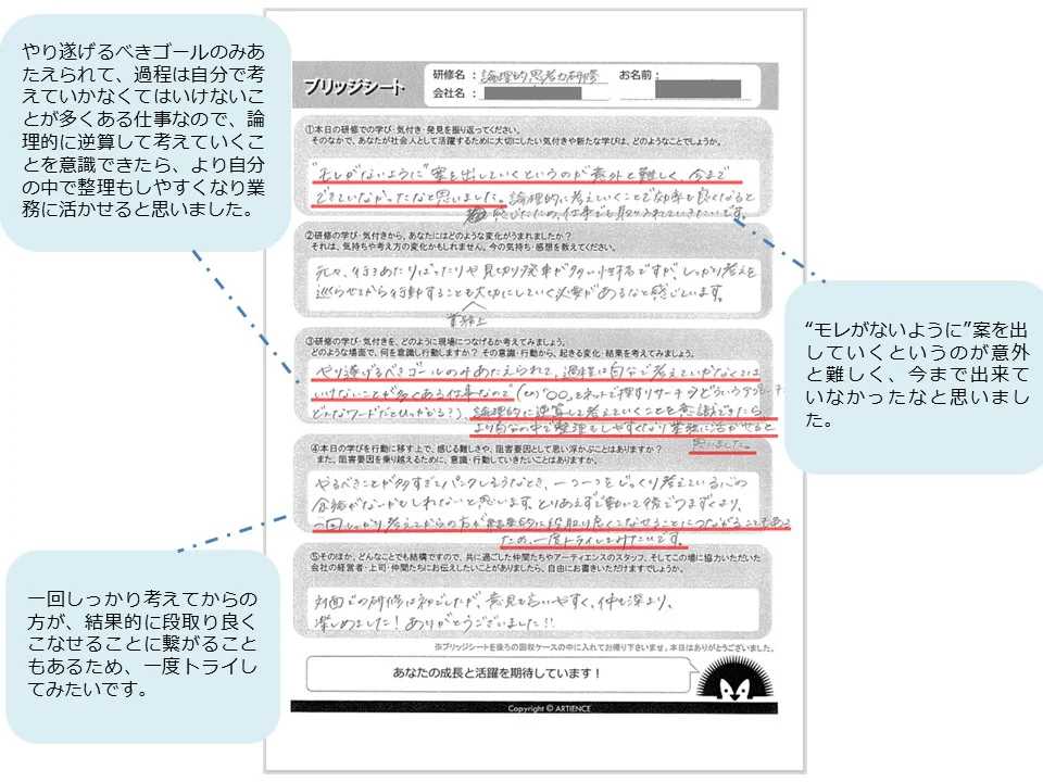 ロジカルシンキング研修を実施した後のアンケートでは次のような内容が記載されていました。