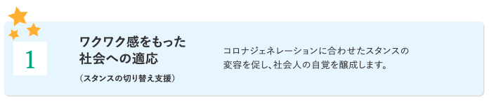 マインドセットを行うに「社会人のあるべき像」一方的に押し付けるのではなく、「学生と社会人の違い」について、新入社員自身で探求し、理解を深めていくプロセスにしています。