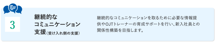 結果、組織の成長を促すことはできなくなります。そうならないようにするためにも、新入社員に早い段階で組織に馴染み、周囲との関係性を築けている状態を期待しています。