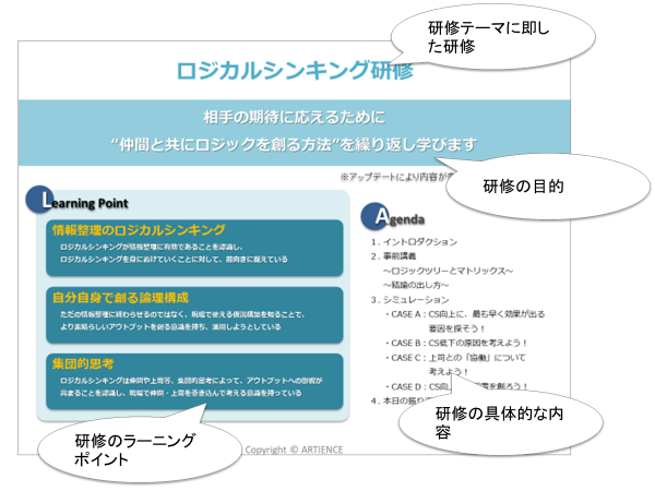 アーティエンスのロジカルシンキング研修では、以下の3つのポイントについて学びます。