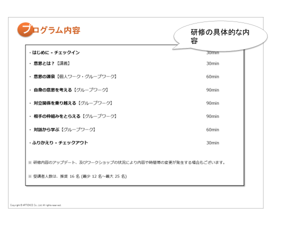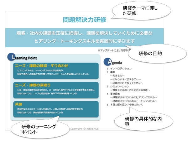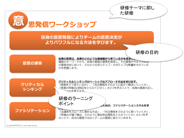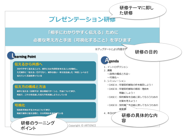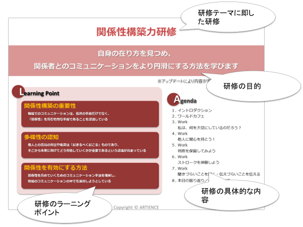 アーティエンスのビジネススキル研修では、以下の3つのポイントについて学びます。