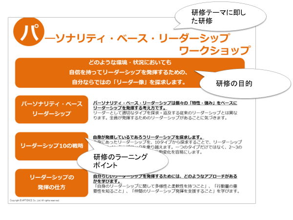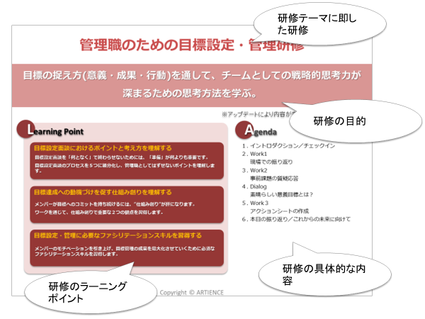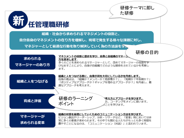 研修テーマは研修の目的に基づいて決定すべきであり、内容が目的にならないよう注意が必要です。