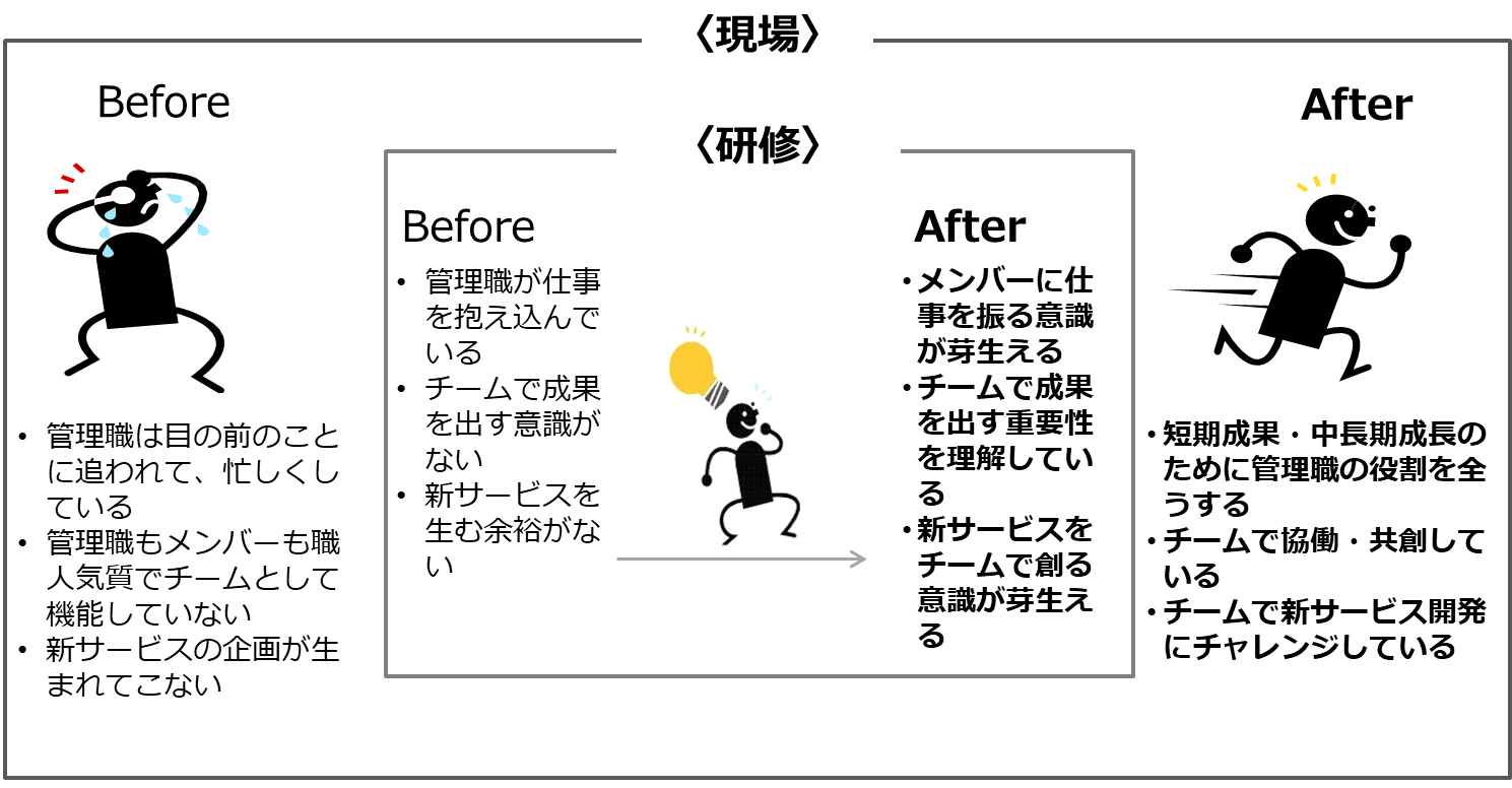 研修の効果を最大化するために、対象者ごとに解決したいことを具体化する必要があります。