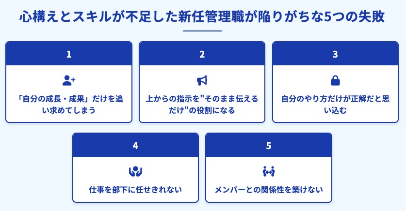3)心構えとスキルが不足した新任管理職が陥りがちな5つの失敗