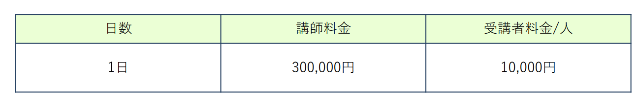 | 交通費 | 受講生・講師の往復交通費を、のべ人数から算出 | 社内開催・定期圏内であれば不要 |