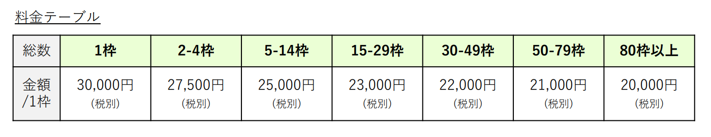 | 個人事業主 | 50,000円~300,000円/クラス |