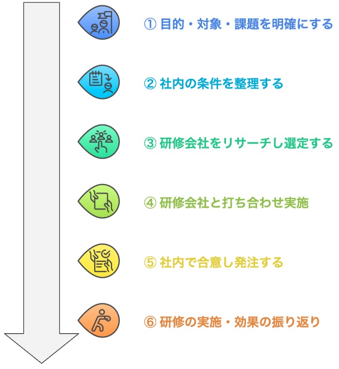 新入社員研修を外部に委託する際は、いきなり「どの研修会社がいいか」を探すのではなく、自社の目的や条件を明確にしてから進めることが成功のカギになります。