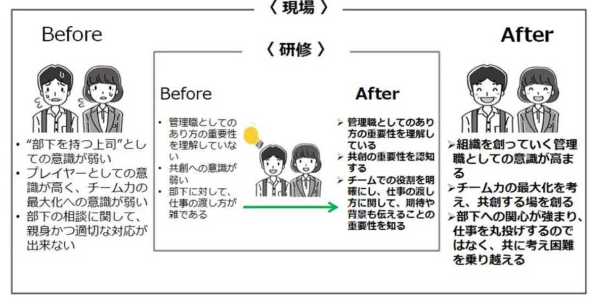 単なるスキル学習ではなく、管理職の認知・行動・関係性を動かすことができれば、離職低下、新サービス創出、組織風土づくりにまでつながります