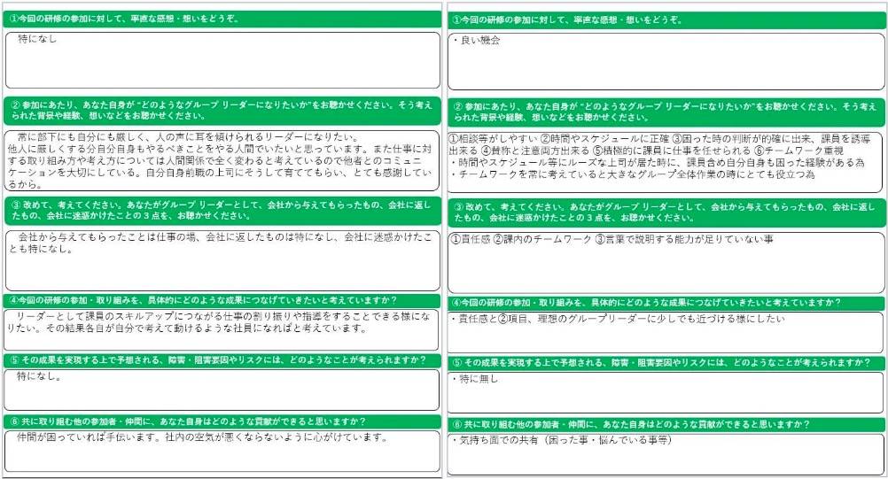 ・研修で生まれた前向きな気持ちを自分の言葉で整理してもらう