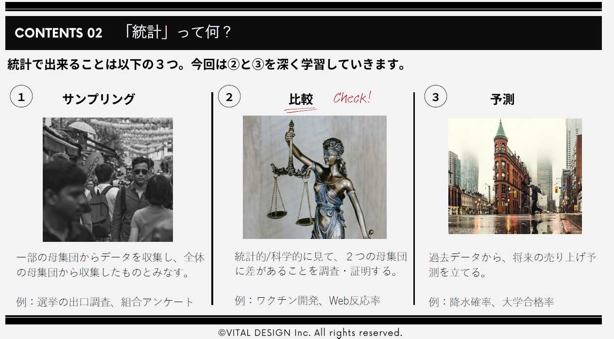 上記プロセスをふまえ、統計基礎をエクセルの分析ツールを用いて学ぶことが多いです。