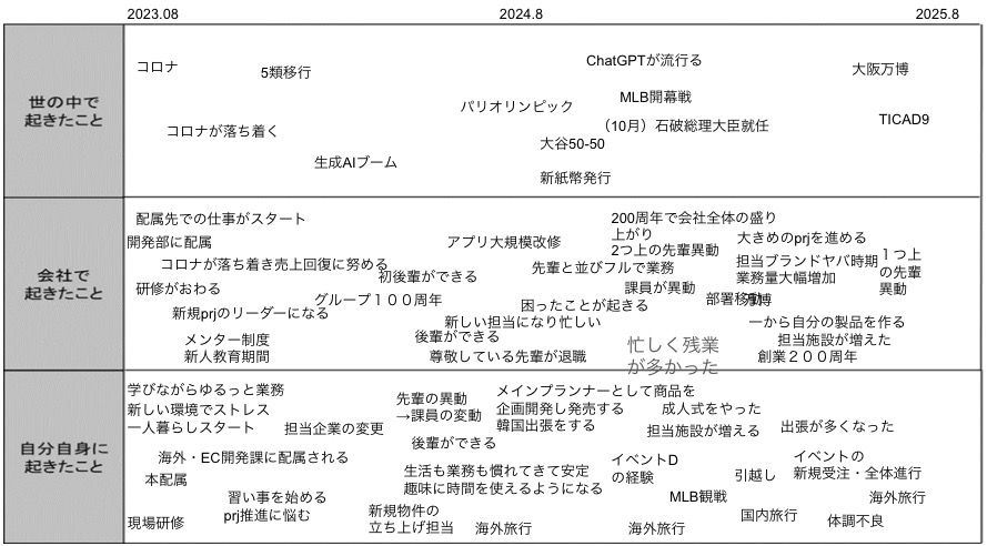 入社した年から現在までの3年間に起きた出来事を客観的に振り返りました。