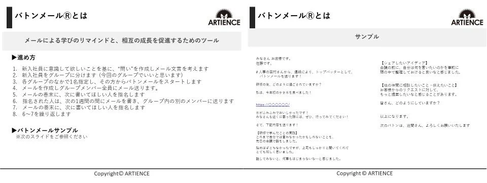 バトンメール®は、アーティエンスが開発した、研修後のフォローツールです。