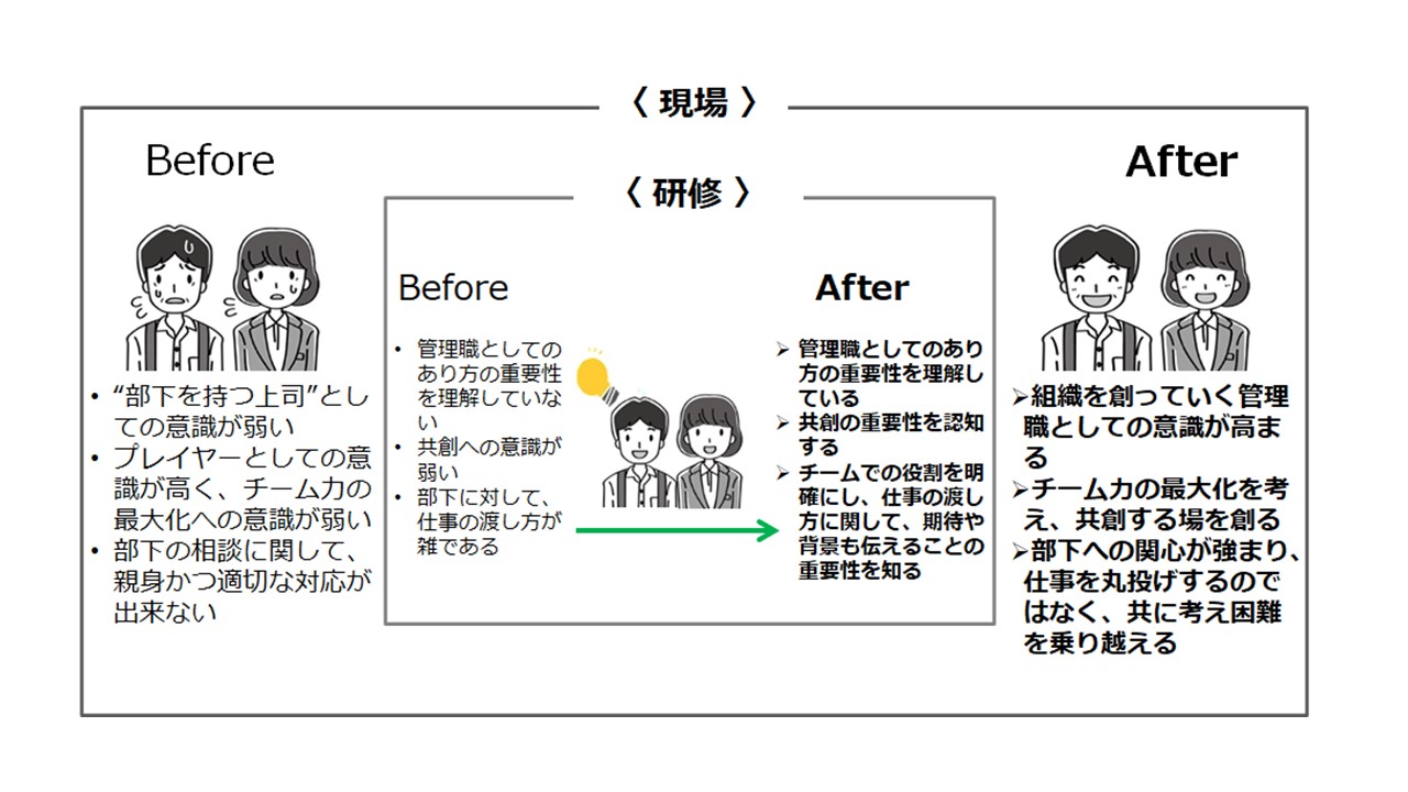 管理職の意識と行動に変化を促し、メンバーやチーム、組織全体にも良い変化を波及させていきましょう。