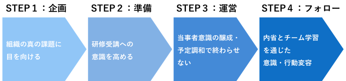 次の章では、それぞれの研修における具体的なプログラム内容や設計ポイントをご紹介します。
