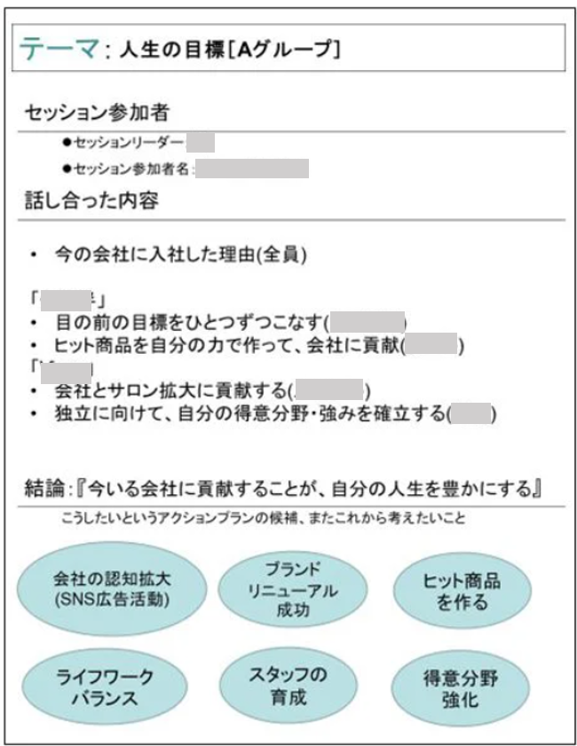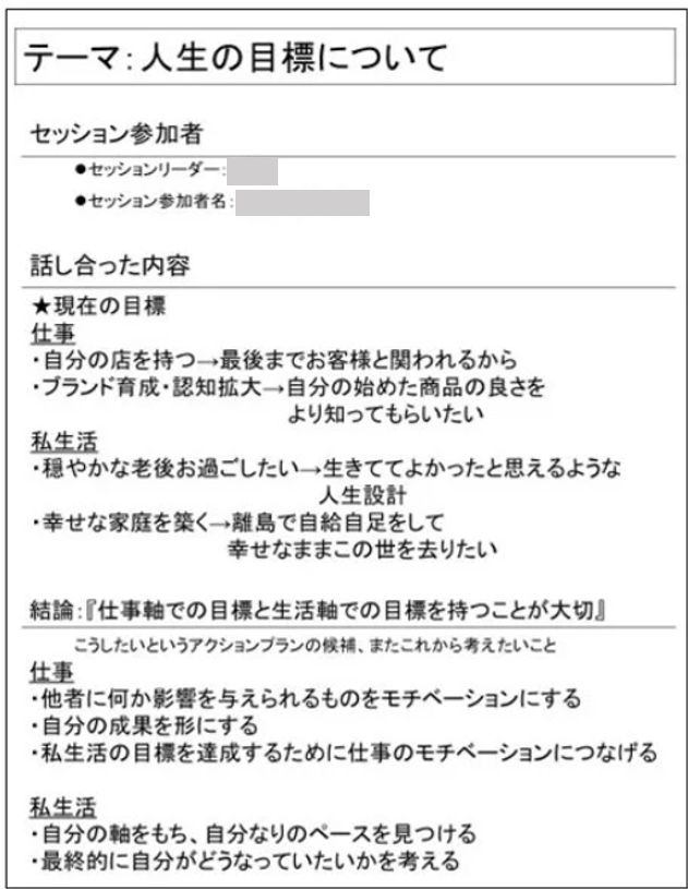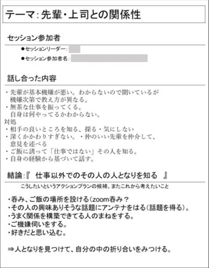 皆さんの対話を聞いていると、仕事の成果よりも関係性に関する内容が多く、関係性を重視していることが伺えました。