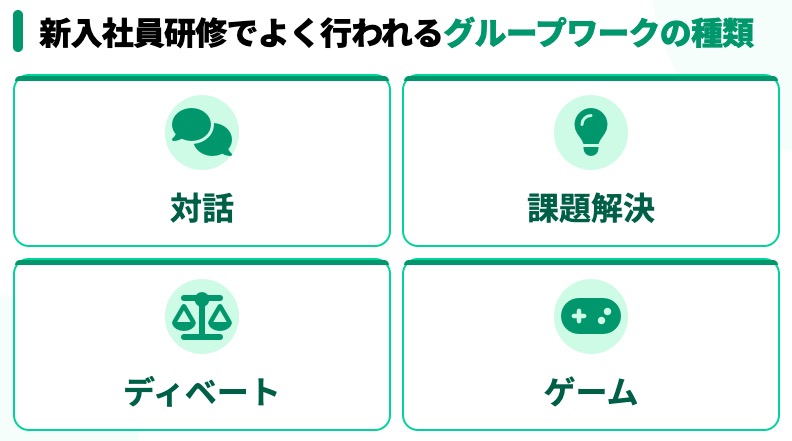 新入社員研修でよく行われるグループワークは、大きく次の4つに分けられます。