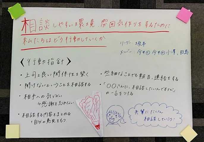 さらに、「アサーティブ」と呼ばれる実践的なコミュニケーション技法を学び、受講者が自分の課題に応じた行動指針を策定します。