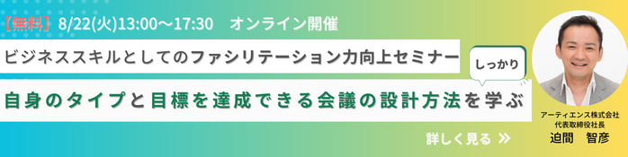 - 「ファシリテーターが上手な人と自分は何が違うんだろう…?」「ファシリテーターが上手い人が実践しているテクニックを知りたい!」そんなふうに思ったことはありませんか?たとえば——・進行役を務めたものの、場が静まり返って誰も話し始めなかった…・意