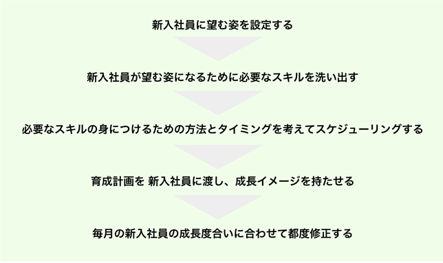 自律自走を促す新入社員の育成計画は、次の5つのステップで作成します。