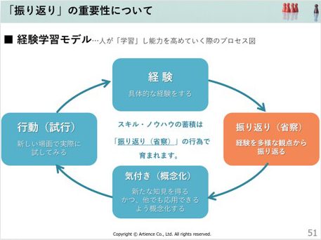 チームメンバー同士、実務上の経験から学び合い(経験学習)、個々としてもチームとしても成長していくためのポイントを学びます。